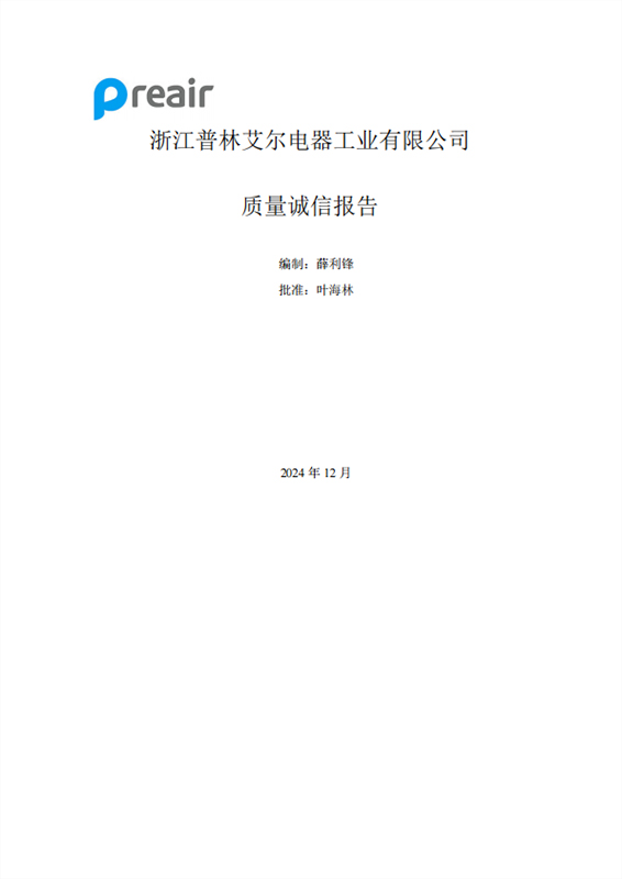 浙江普林艾爾電器工業(yè)有限公司質(zhì)量誠信報告